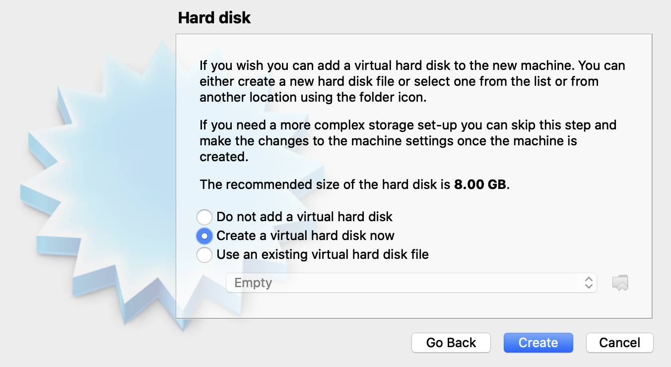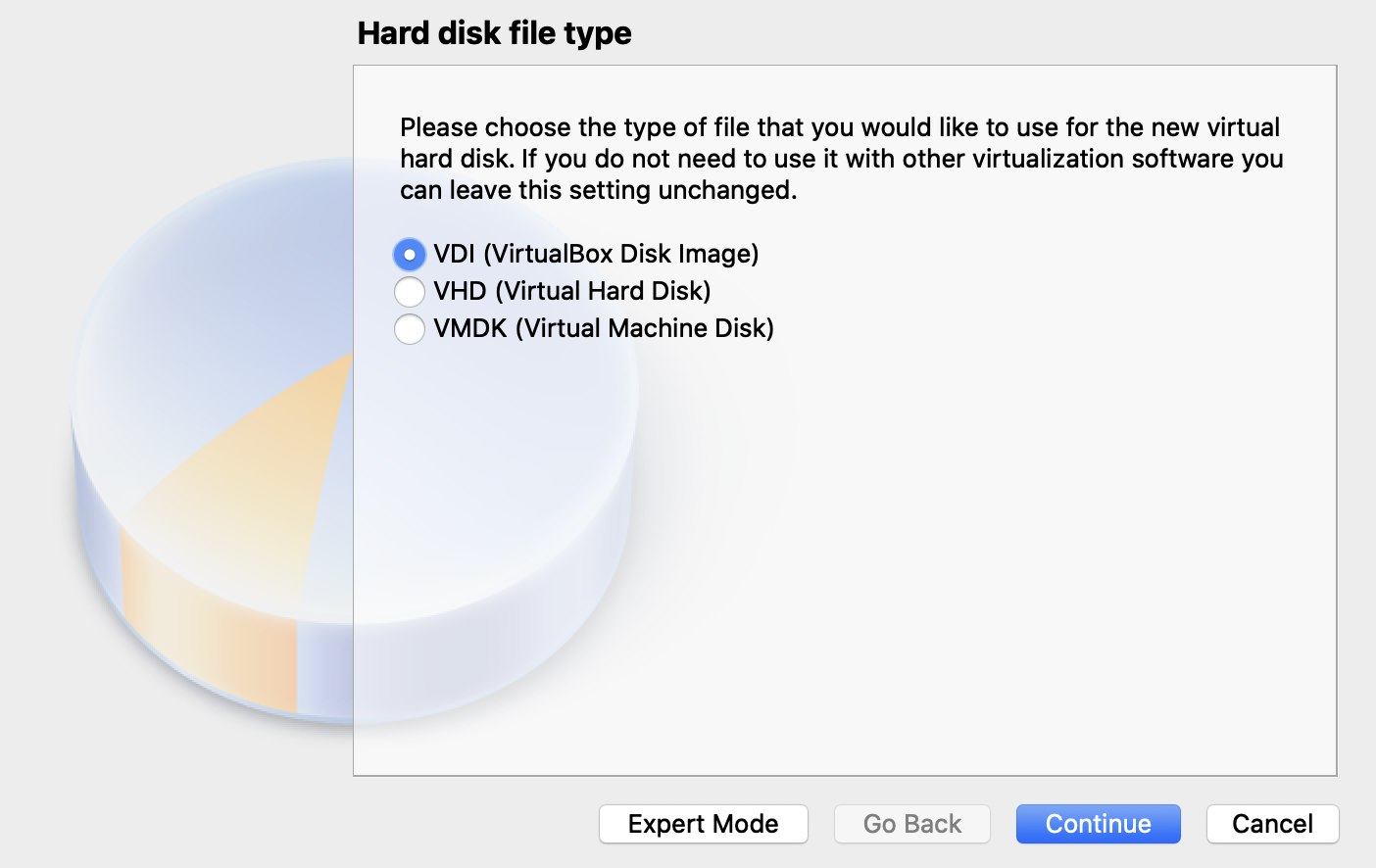 Virtualbox에서의 하드디스크 타입 설정을 합니다. vdi를 선택하도록 합니다.