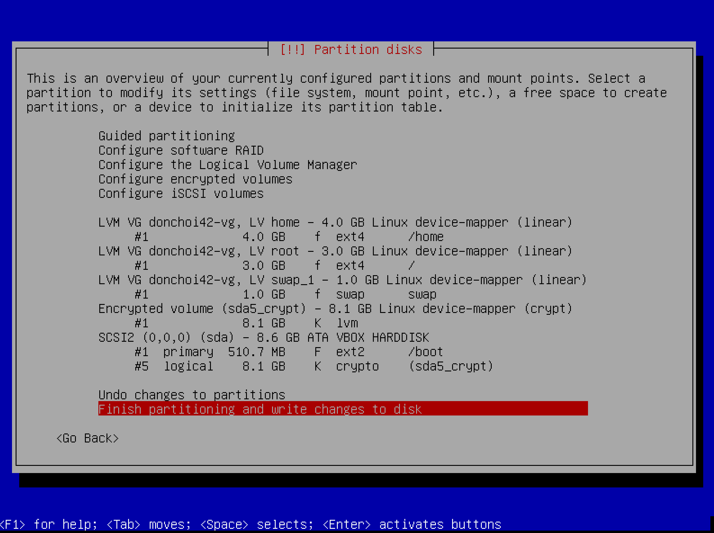 LVM 파티션 여부를 묻습니다. yes를 선택하고 기다립니다...