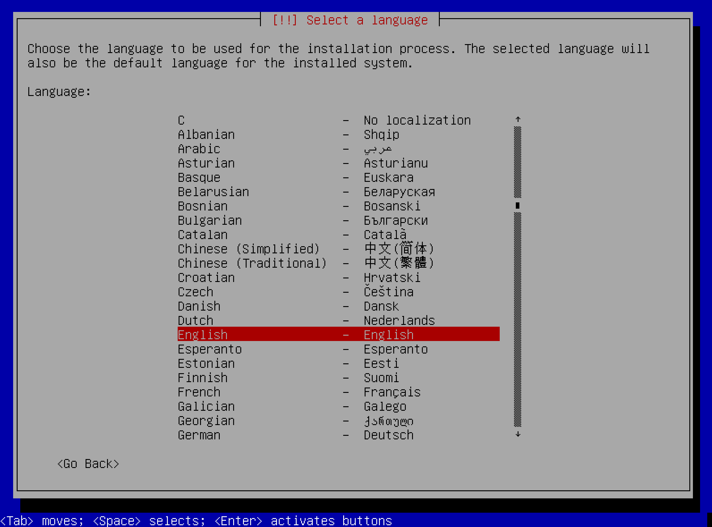 운영체제에서 사용할 언어를 선택합니다. 한국어를 선택하면 깨지는 현상때문에 영어를 선택합니다.